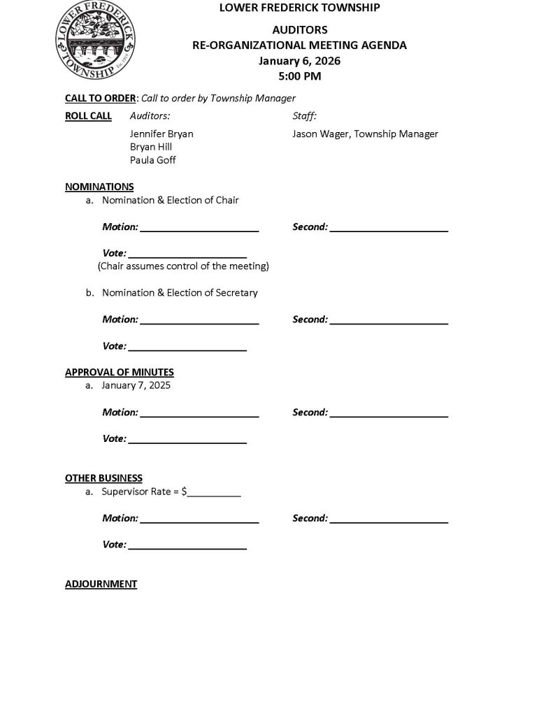 5:00 pm – Elected Auditors Re-Organizational Meeting