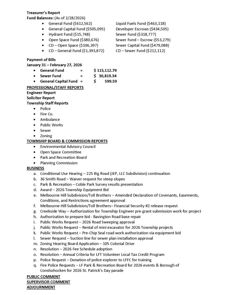 7:00 pm Board of Supervisors General Meeting