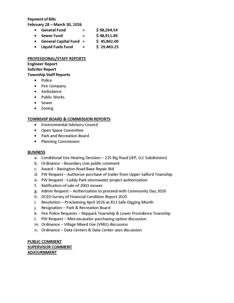 7:00 pm Board of Supervisors General Meeting