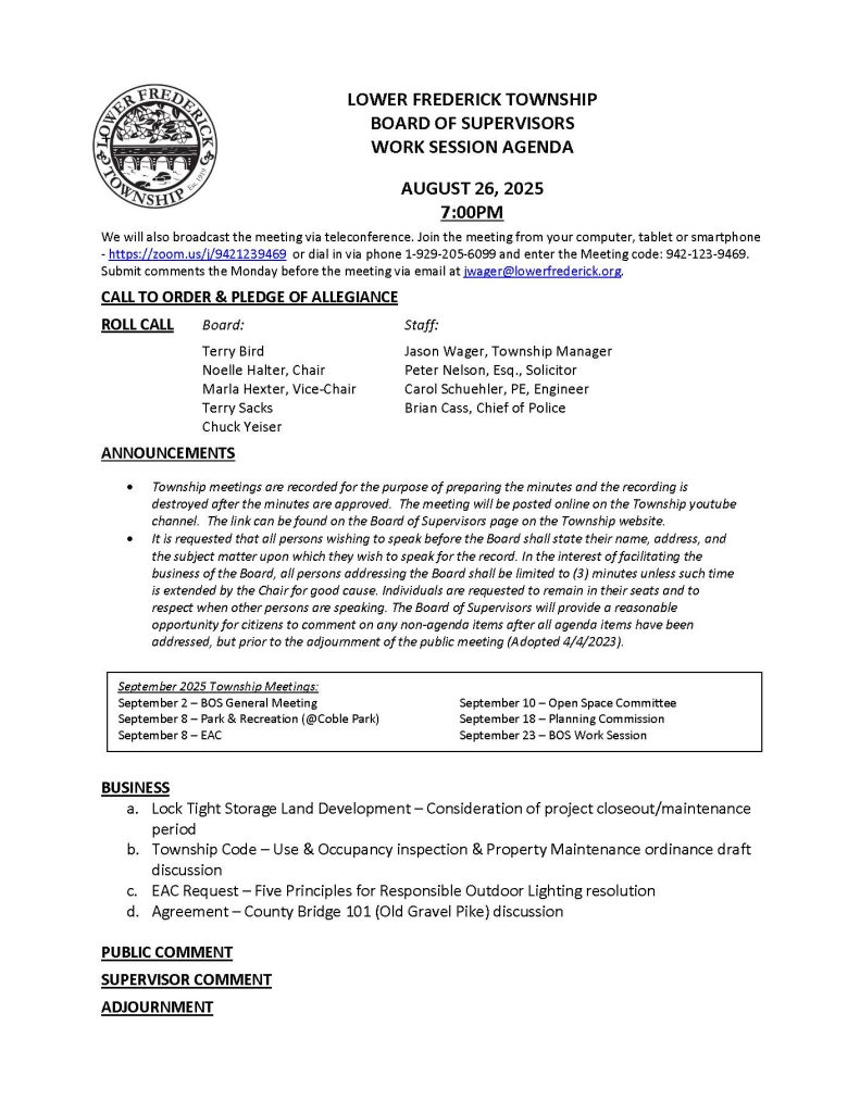 7:00 pm Board of Supervisors Work Session-CANCELLED