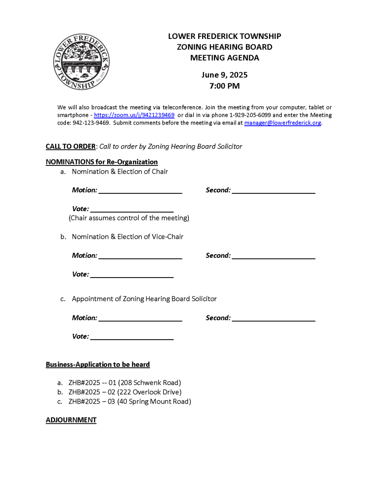 Zoning Hearing Board- 222 Overlook Drive, 40 Spring Mount Road
